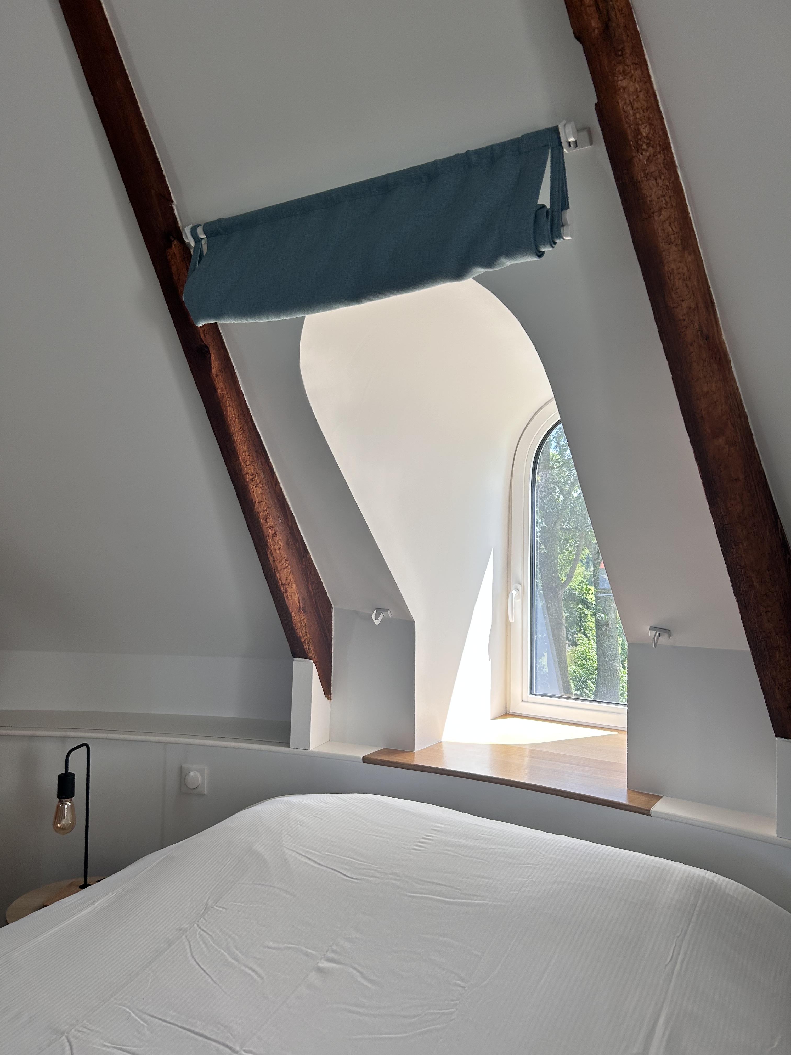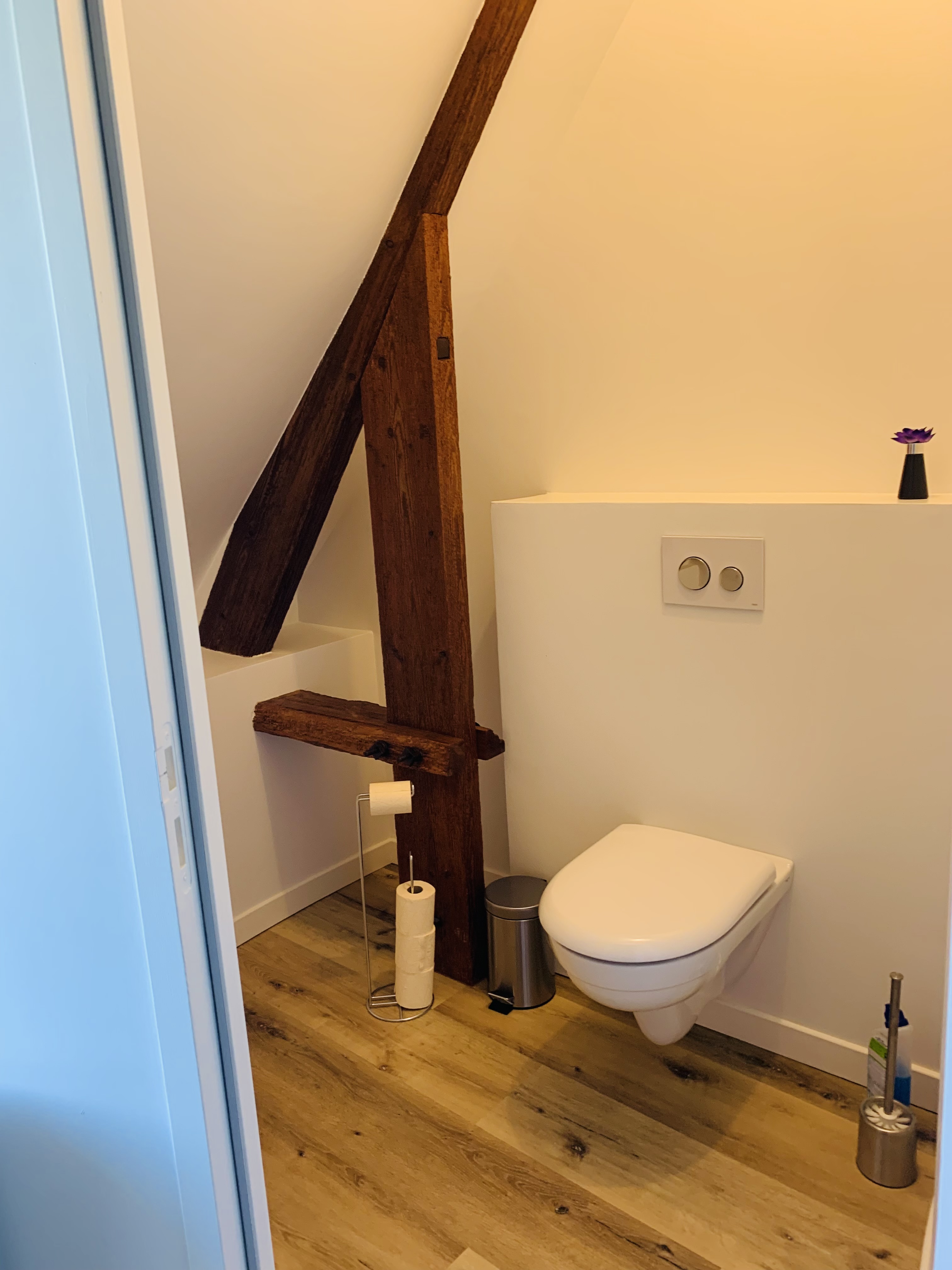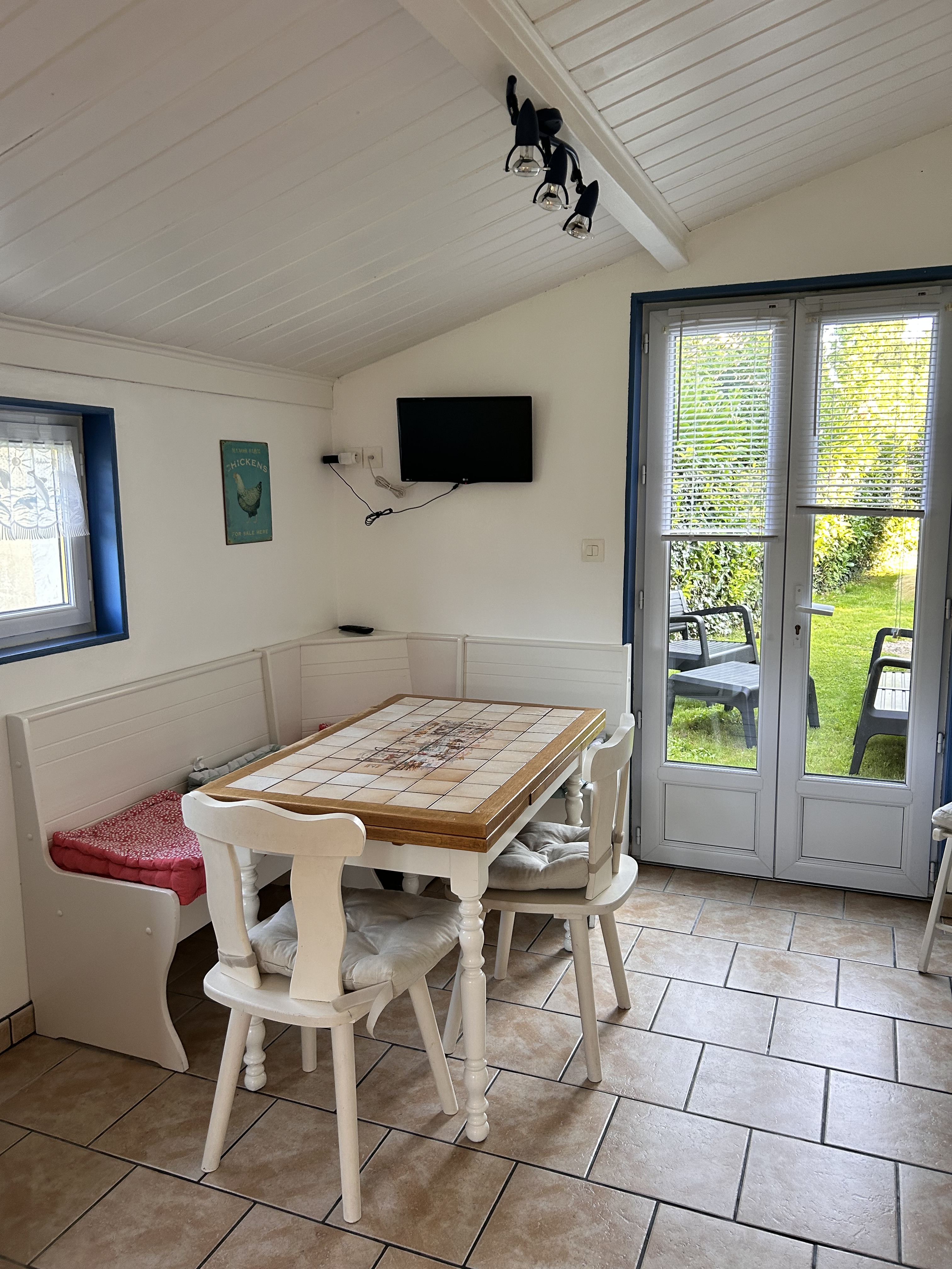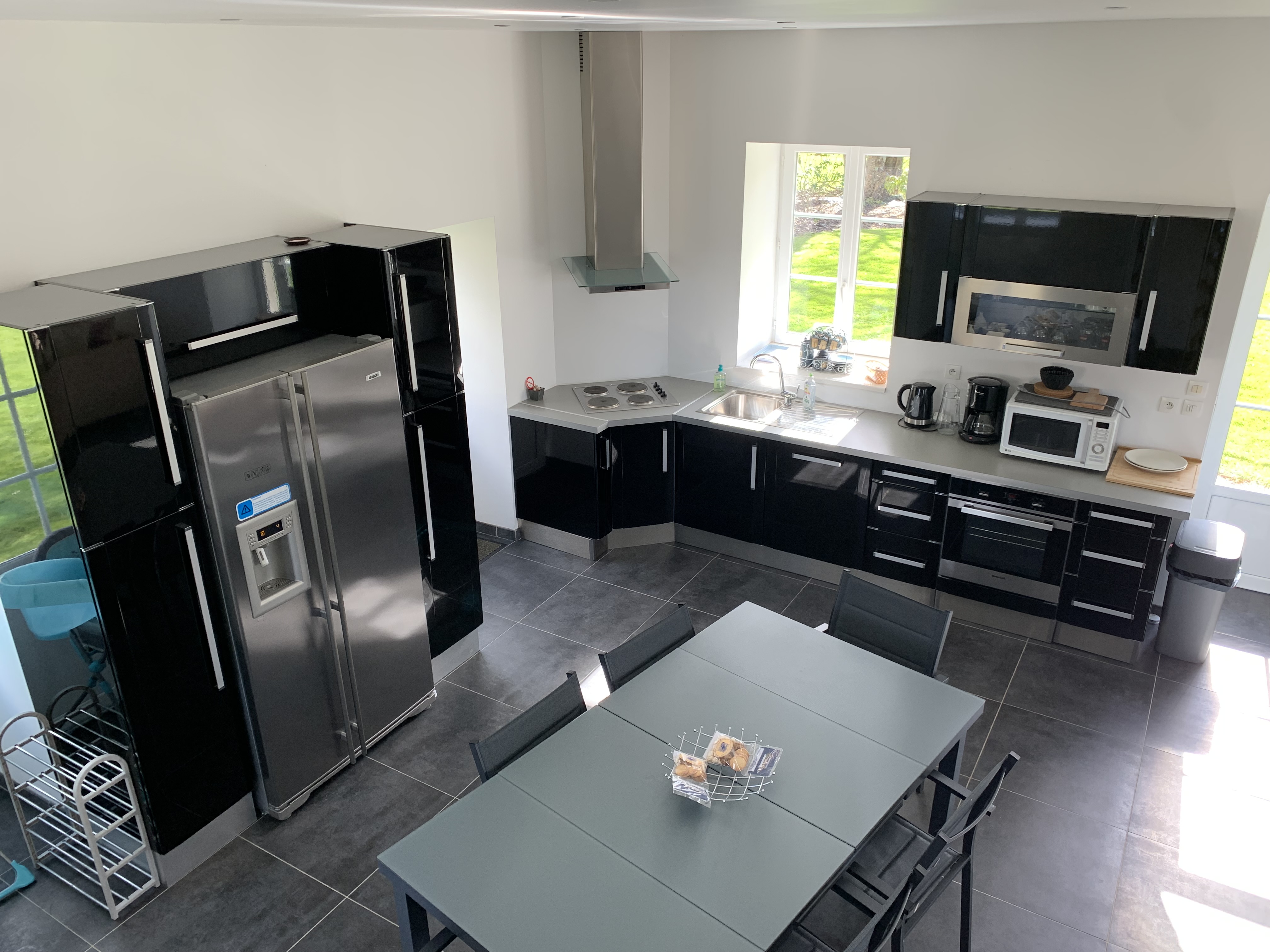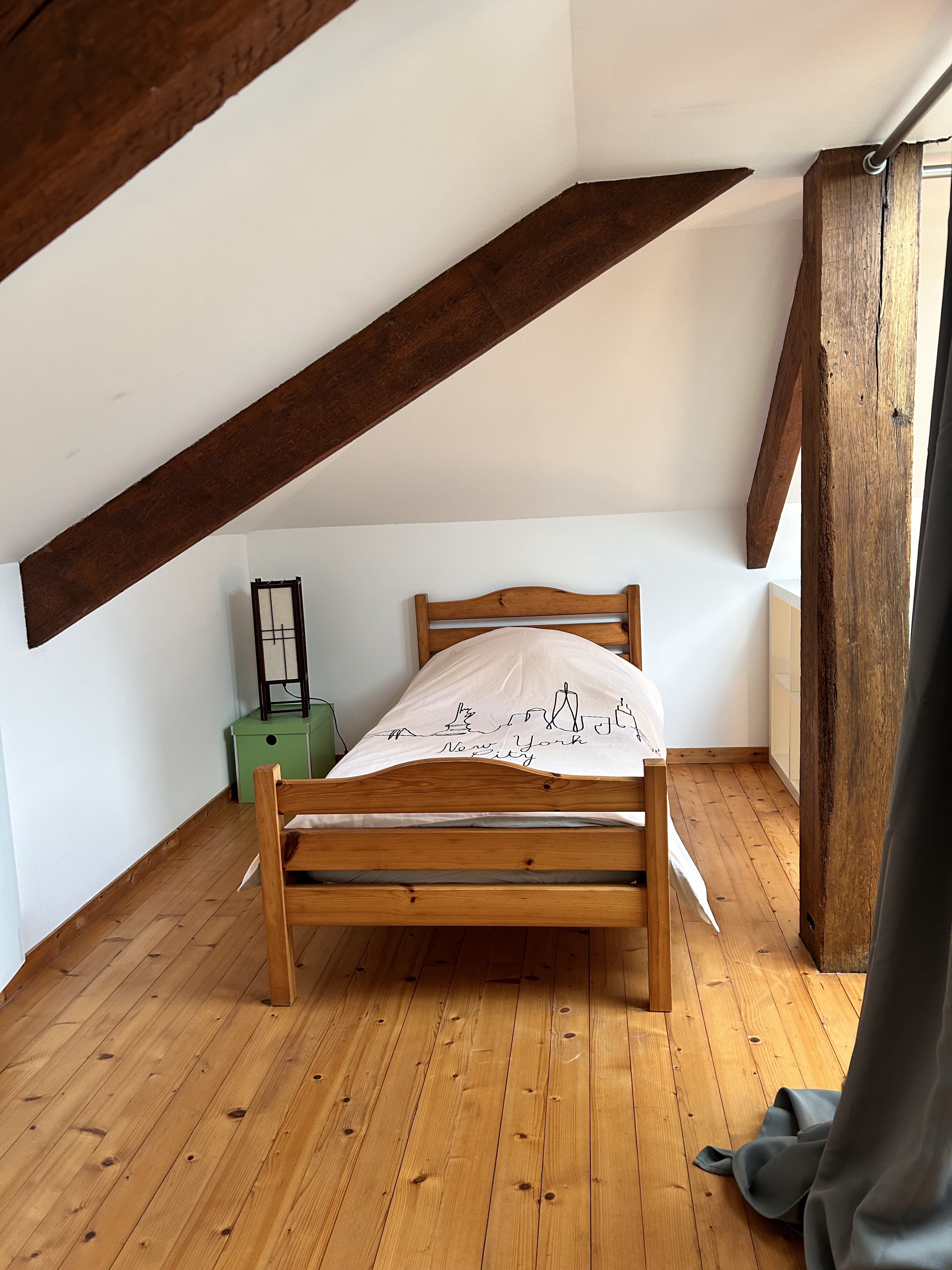 Grande maison de deux chambres avec salle de bain privative chacune au premier étage. Au second étage, chambre mansardée avec deux lits simples.