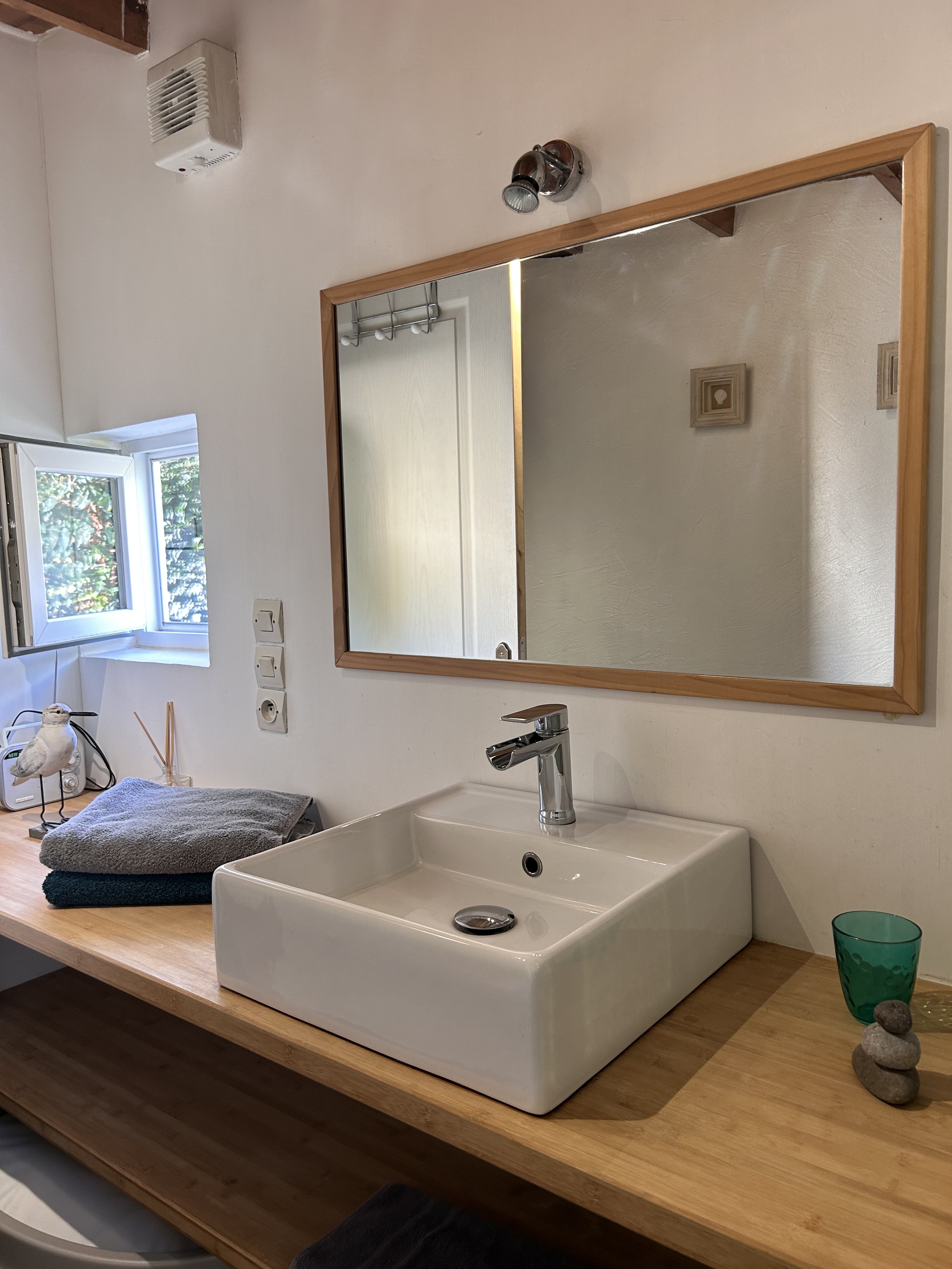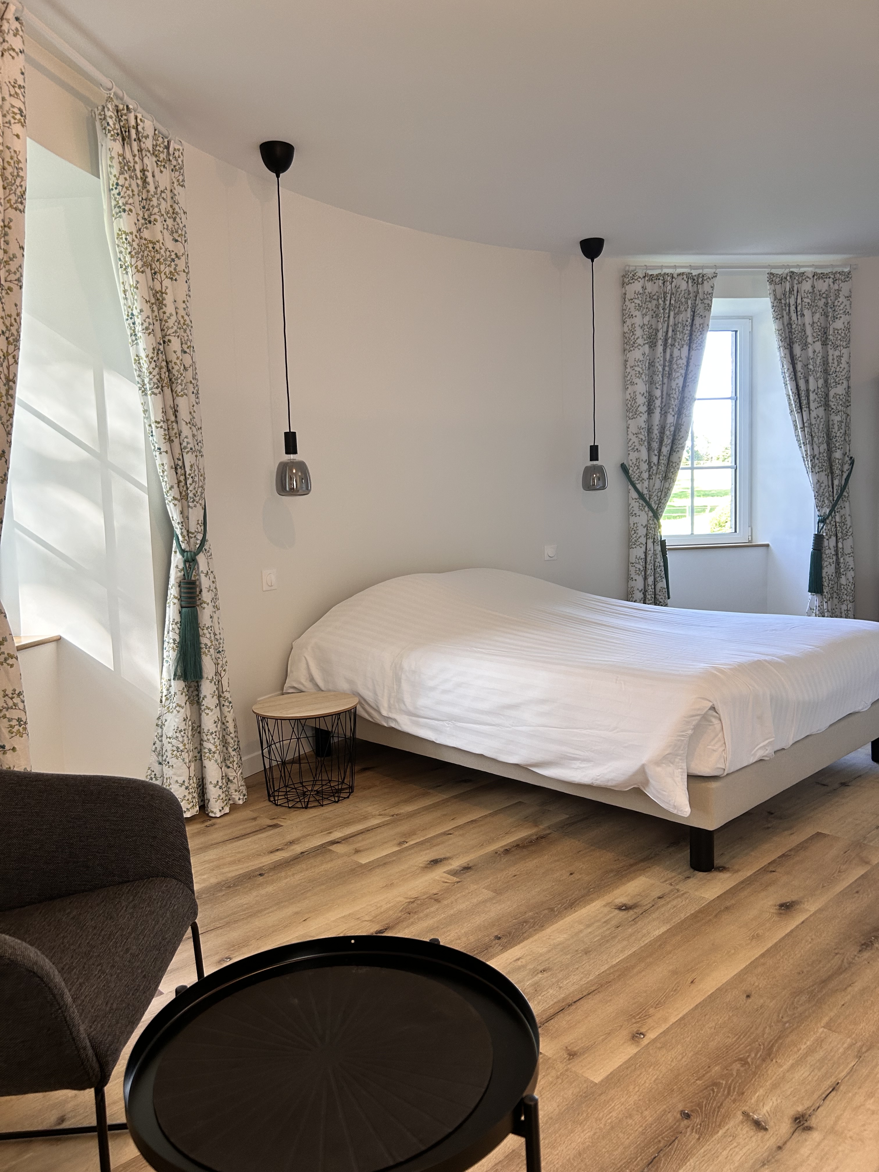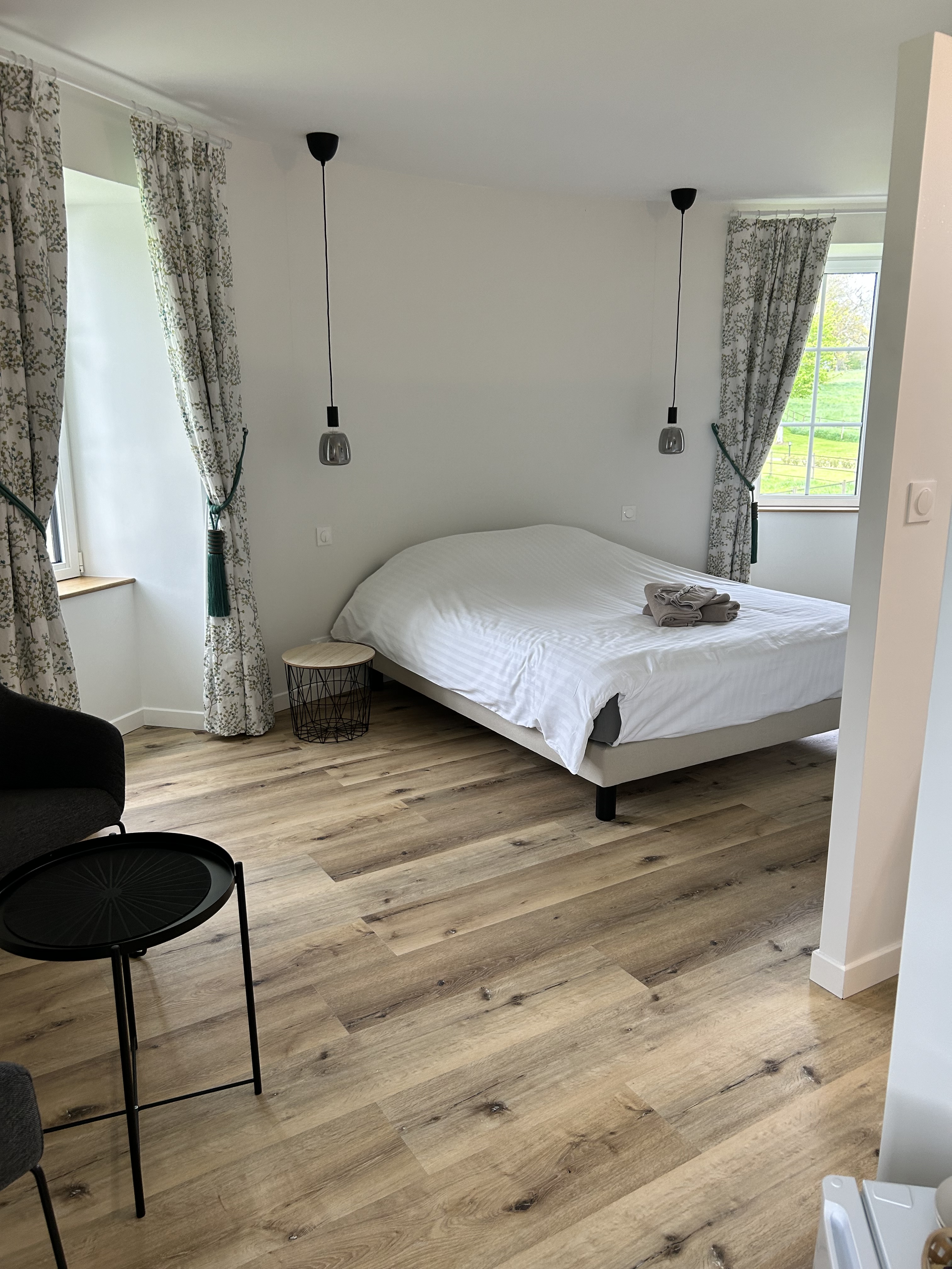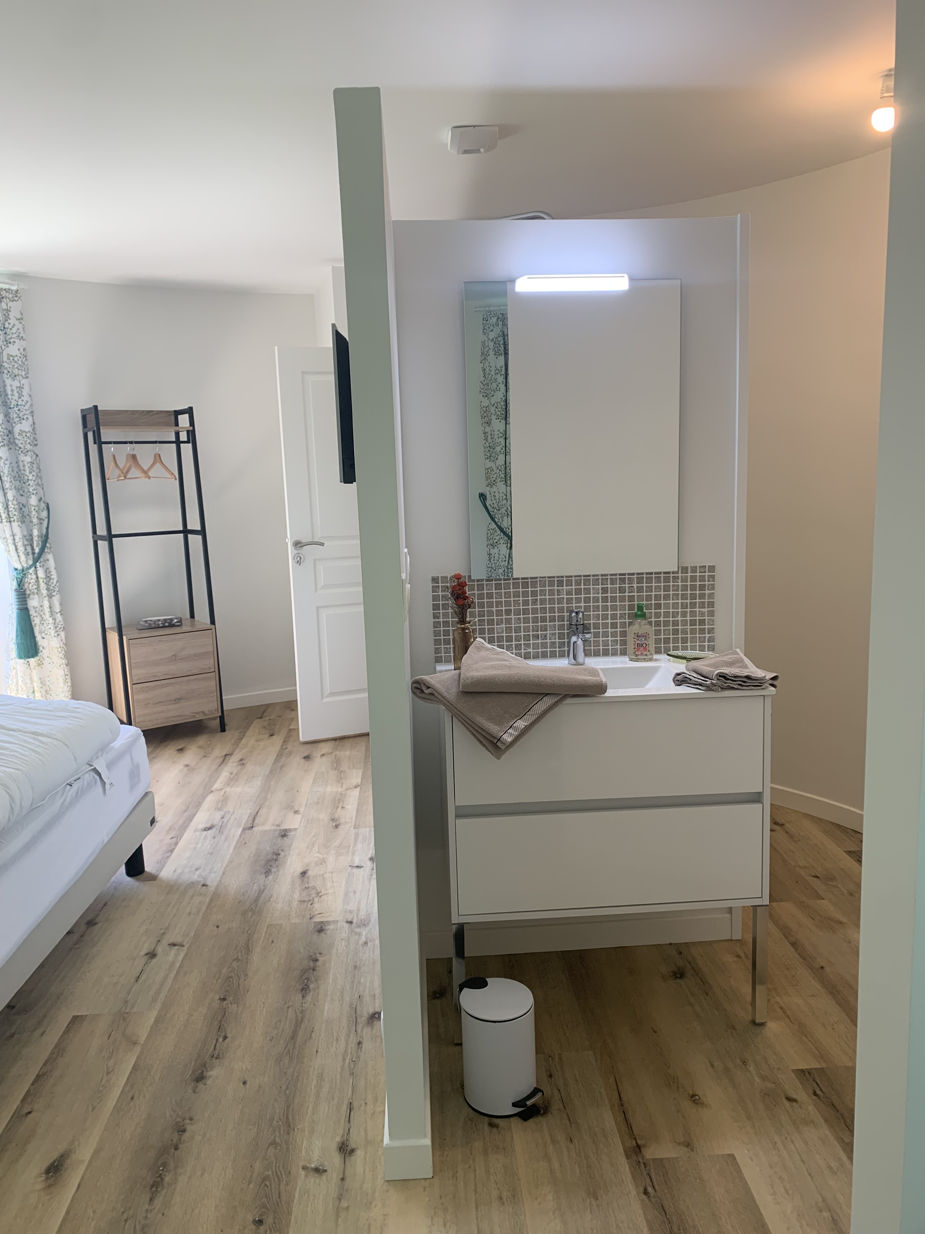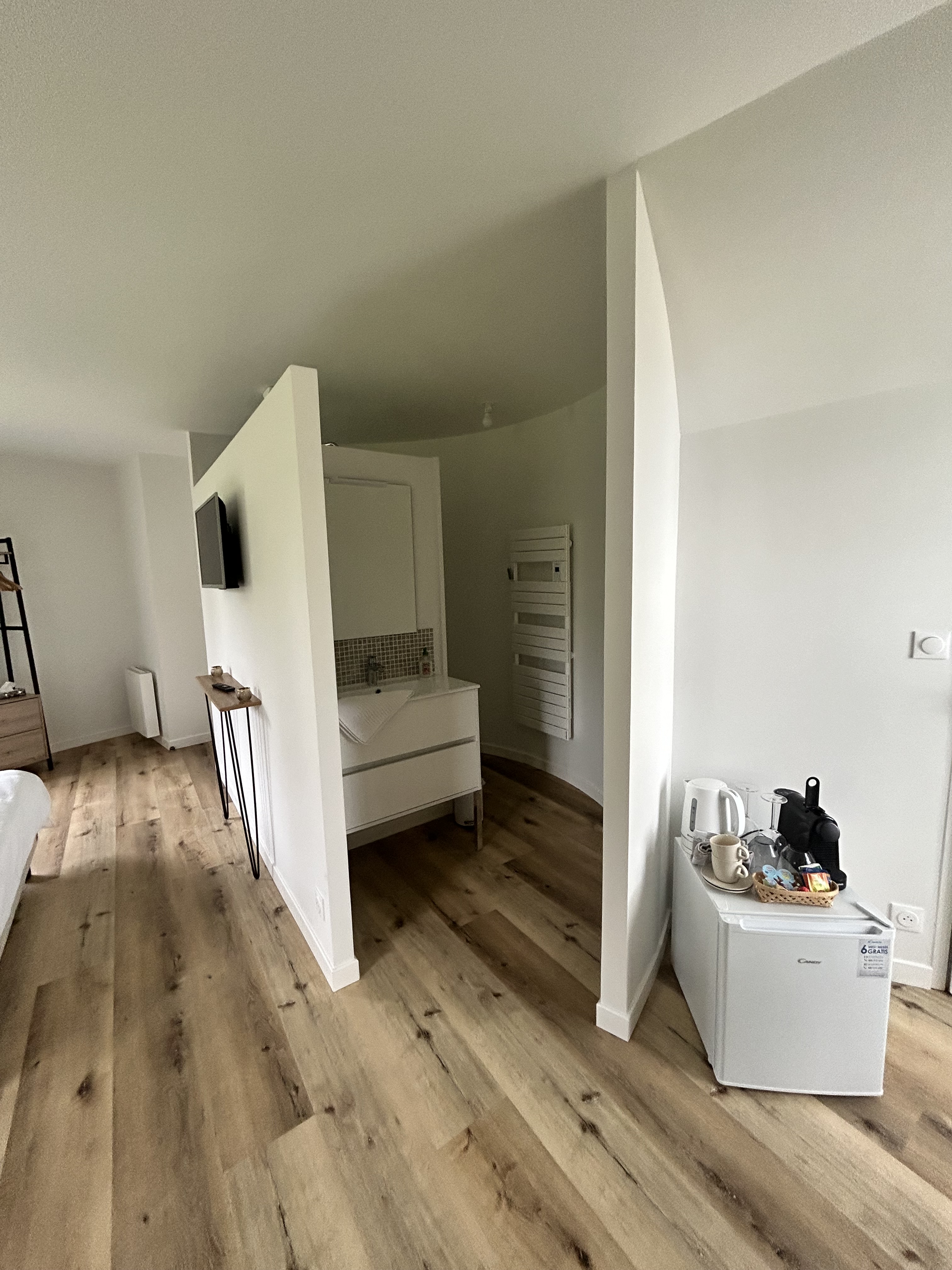 Deux belles chambres avec salle de bain privative. Mini-frigo, bouilloire, machine à café.