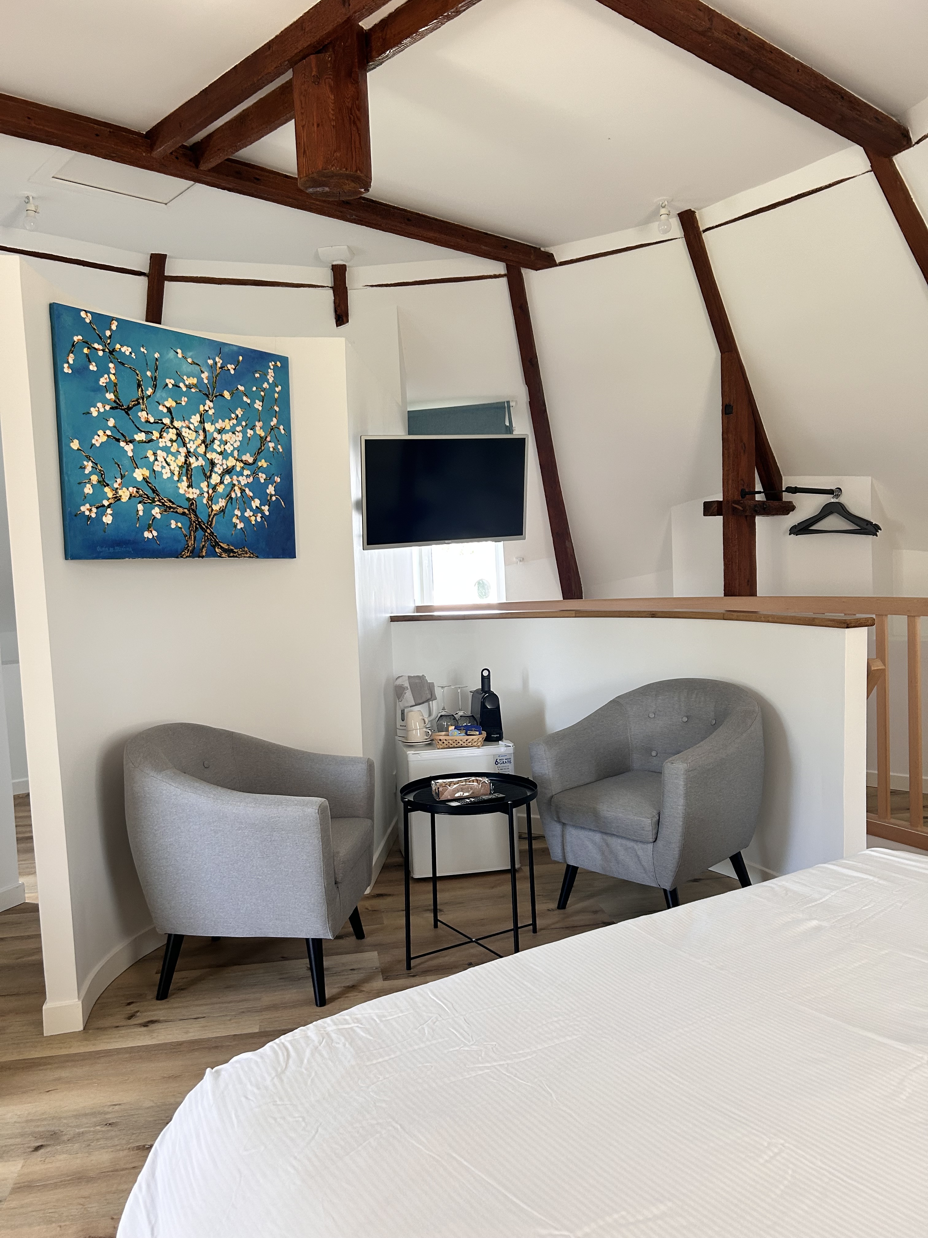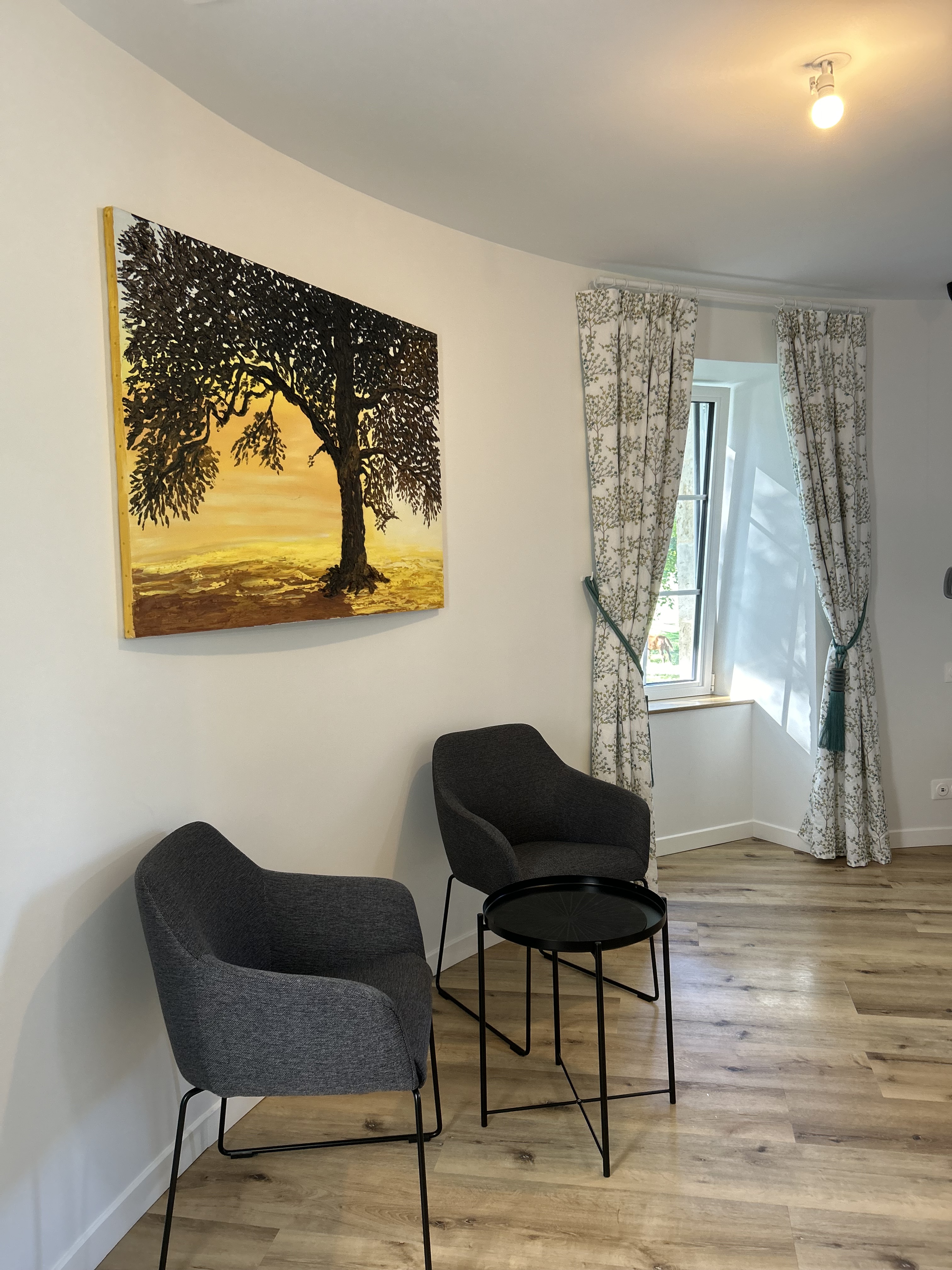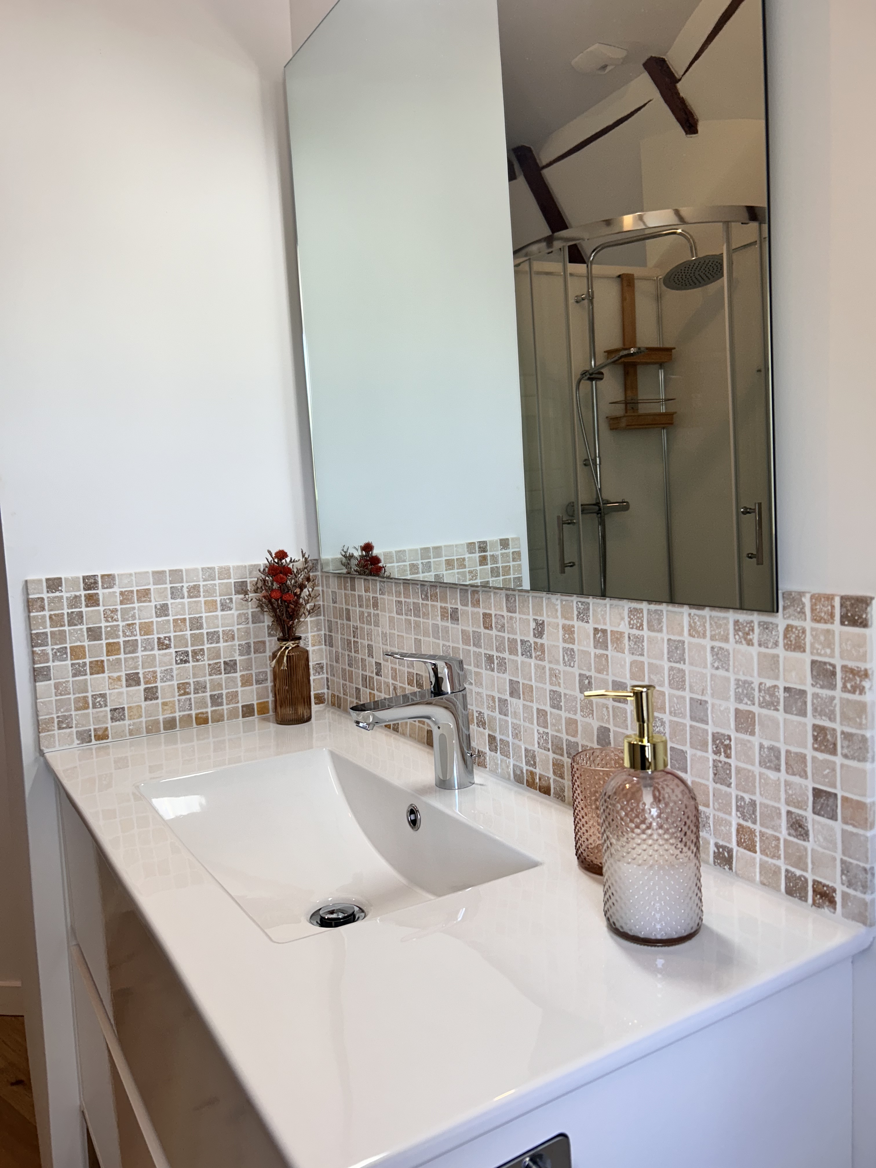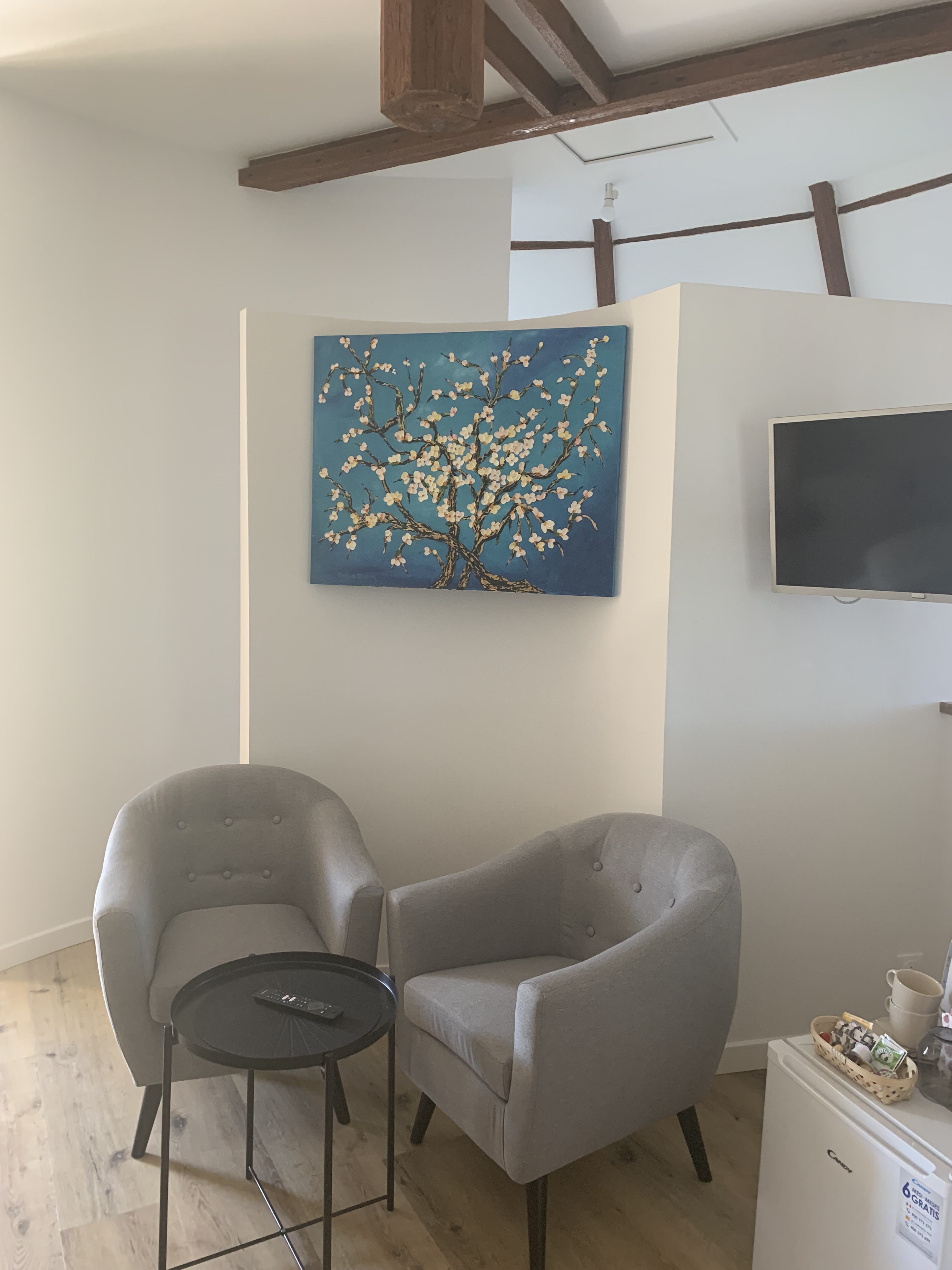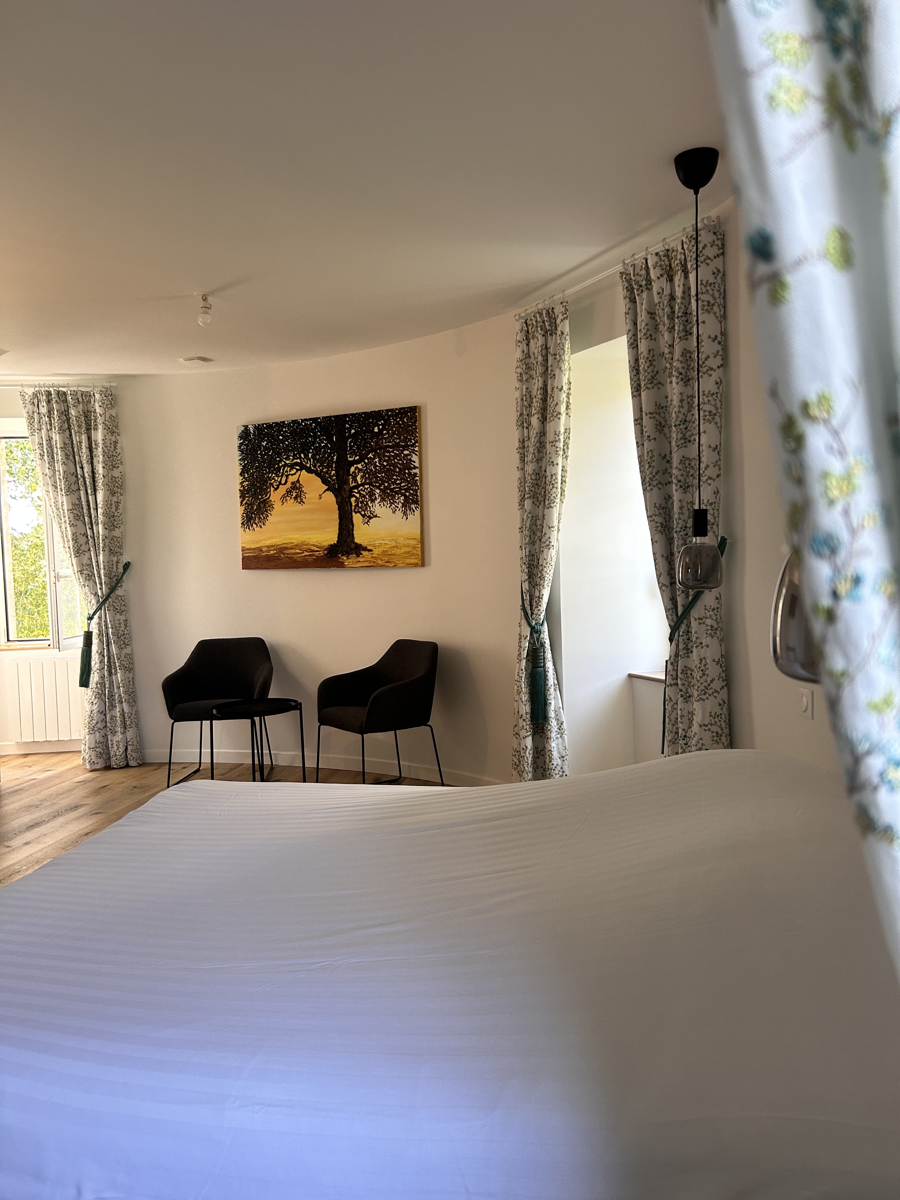 Deux belles chambres avec salle de bain privative. Mini-frigo, bouilloire, machine à café.